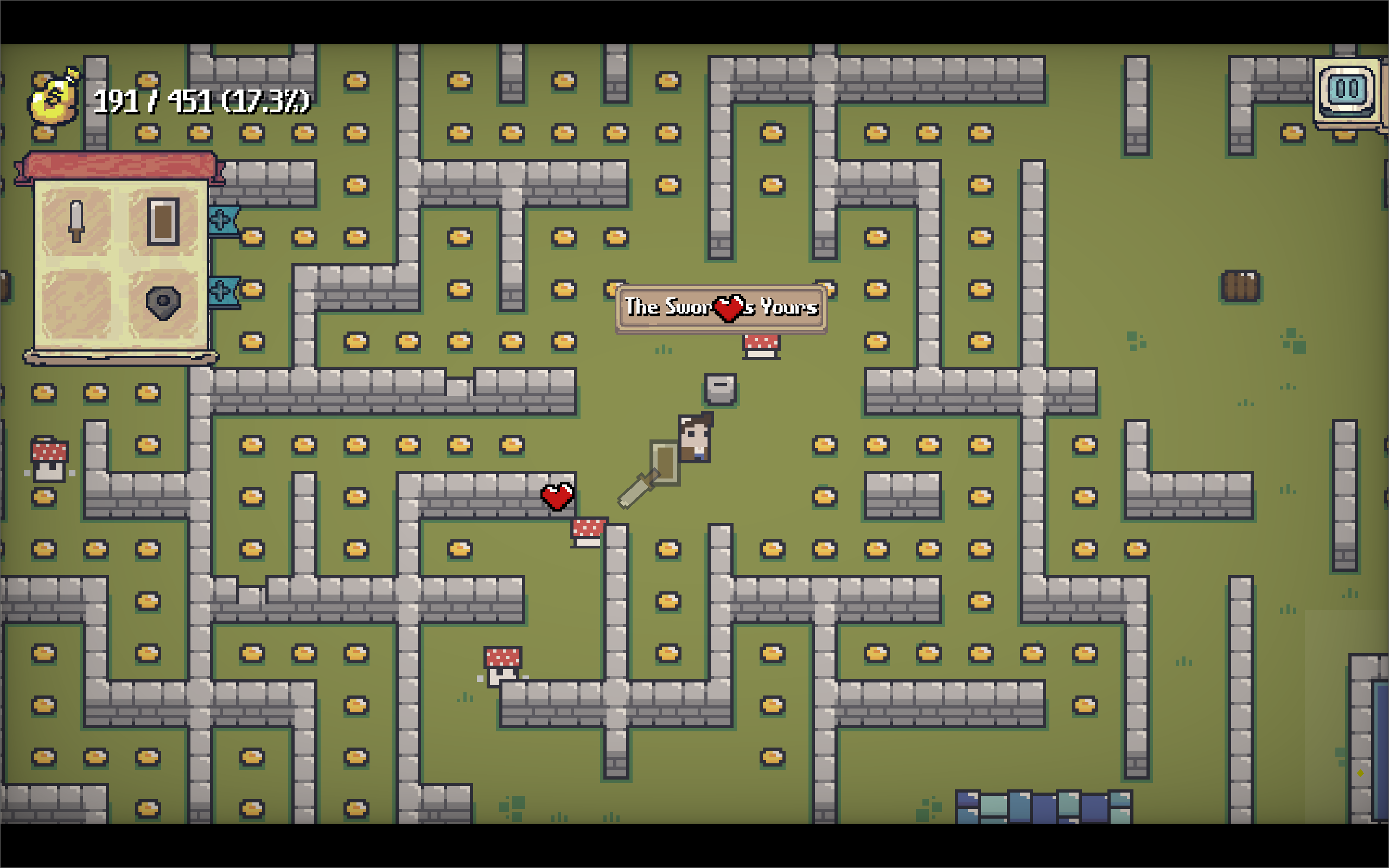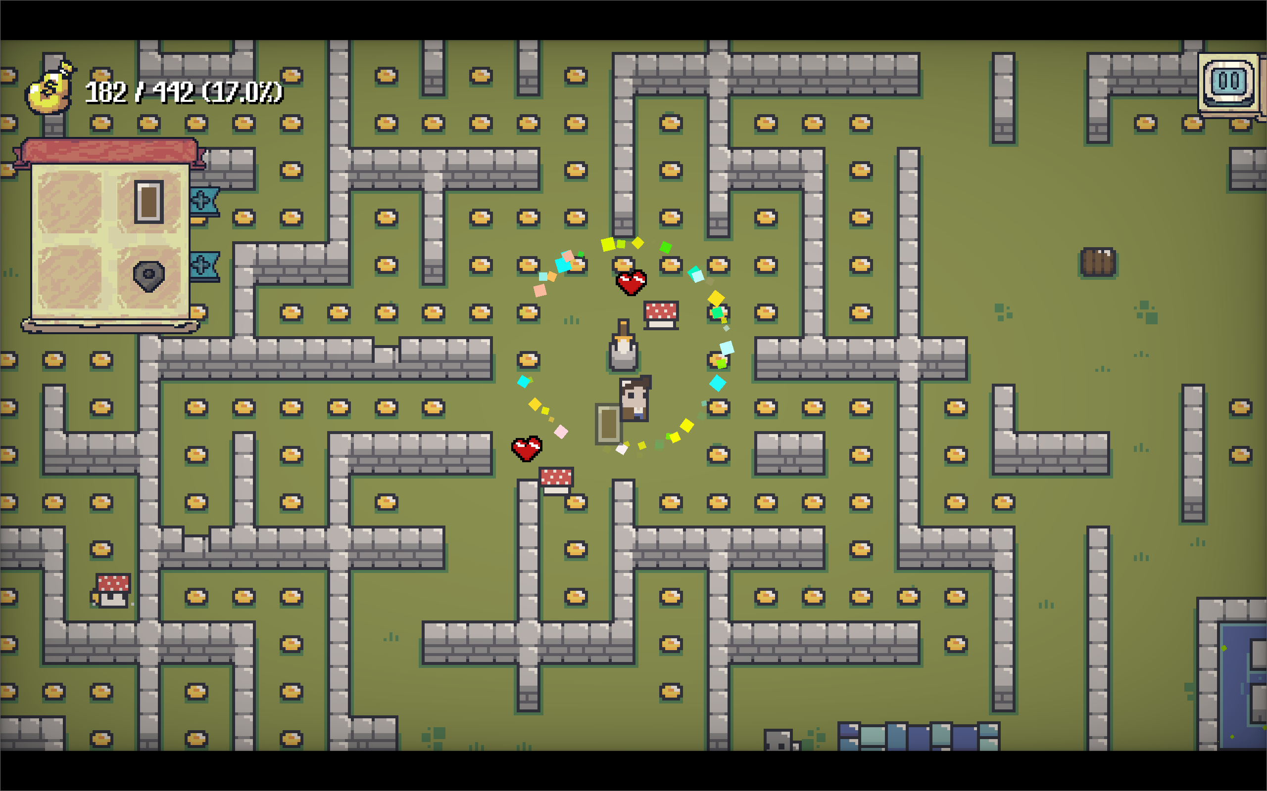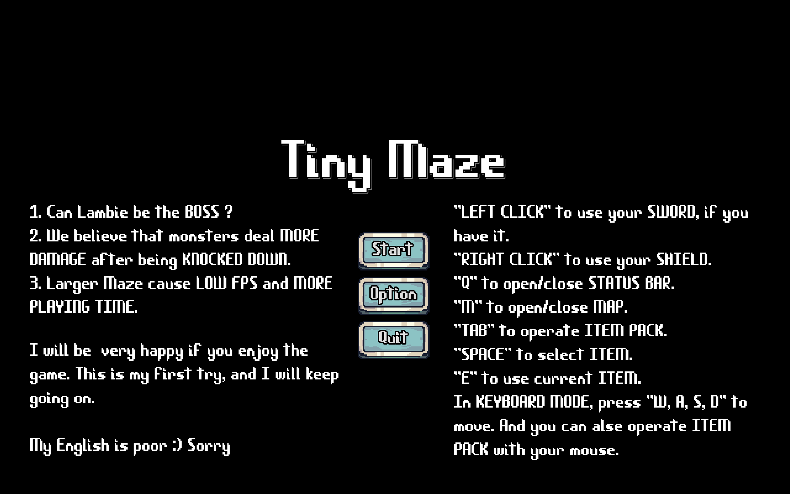 The maze maps are procedurally generated. Before starting the game, players can choose the map size from six different options. However, larger maps will put more strain on the CPU, potentially lowering the game's FPS and increasing the time required for map generation.